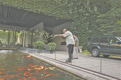 每当盛夏时节,天津大学冯骥才文学艺术研究院整体会被爬山虎包围。院子里有一处人工湖,里面有很多锦鲤,冯骥才经常过来喂食,与鱼逗乐。