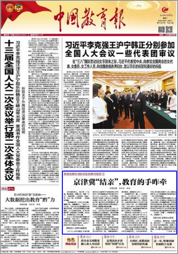 而对于北京最新的疏解计划,全国人大代表、天津商业大学副校长邱立成则建议,京津冀教育部门应加强研究和沟通协调,聚焦京津冀协同发展中的重点领域、难点问题,开展协同研究和产学研协作,优化和提升教育的功能布局,推动基础教育优质发展。