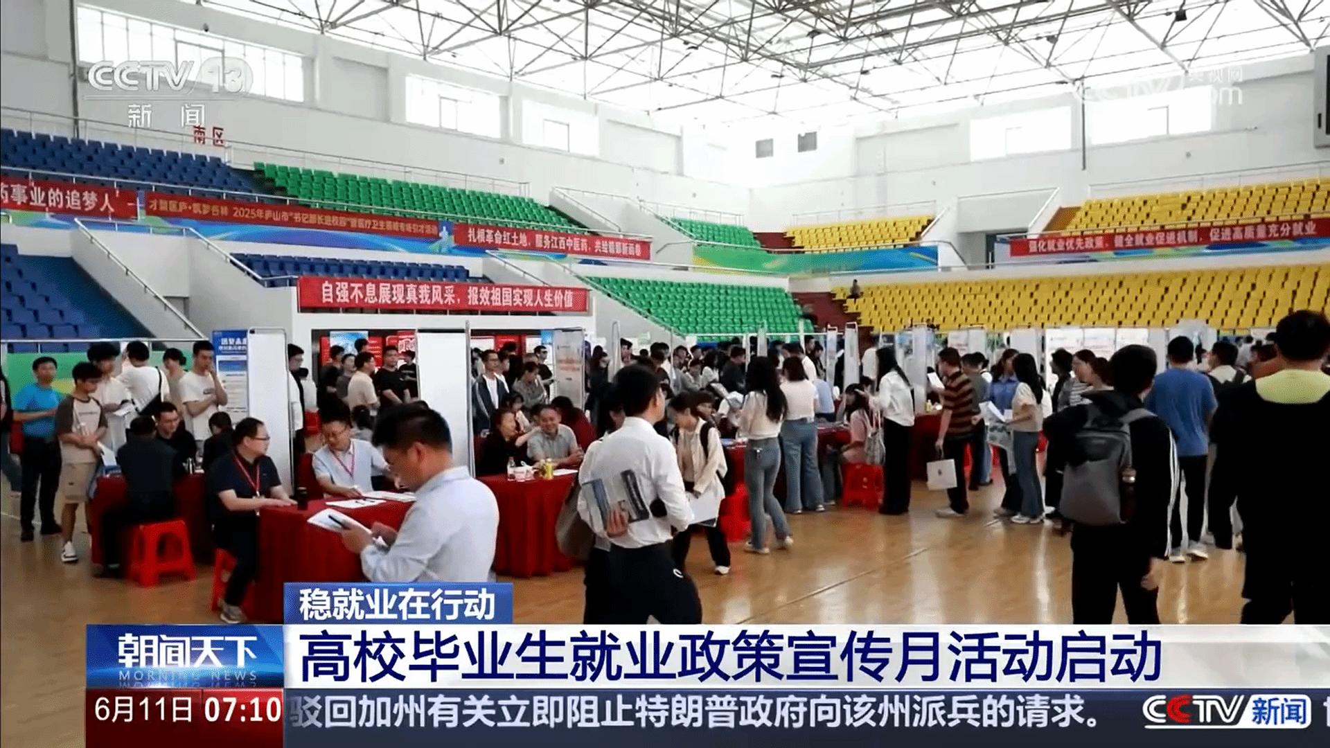 央视网讯 当前,正值高校毕业生离校前促就业关键冲刺期,6月10日,教育部启动2025年高校毕业生就业政策宣传月活动,活动主题为“政策护航 加力扩岗”,时间为2025年6月至7月。