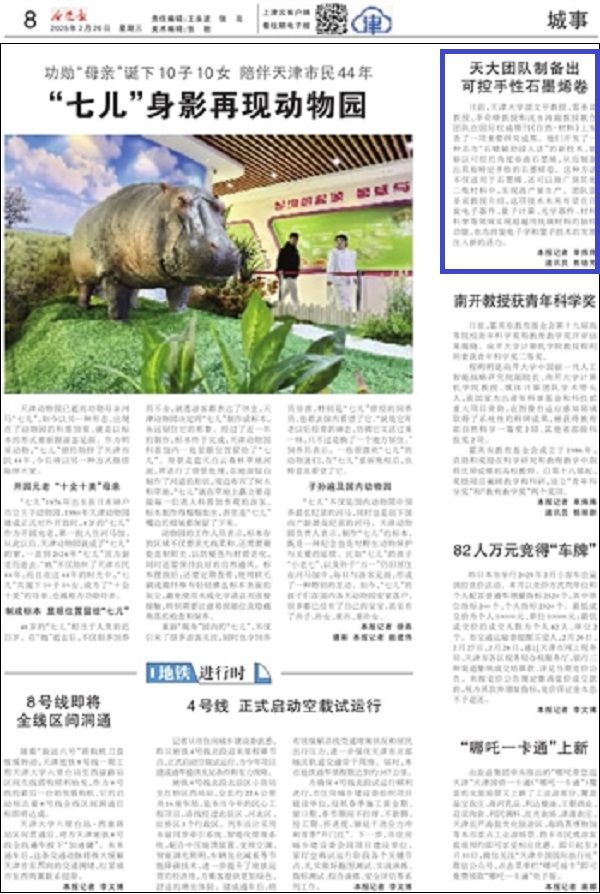 日前,天津大学胡文平教授、雷圣宾教授、李奇峰教授和沈永涛副教授联合团队在国际权威期刊《自然·材料》上发表了一项重要研究成果。他们开发了一种名为“石蜡辅助浸入法”的新技术,能够以可控的角度卷曲石墨烯,从而制备出具有特定手性的石墨烯卷。这种方法不仅适用于石墨烯,还可以推广到其他二维材料中,实现高产量生产。团队雷圣宾教授介绍,这项技术未来有望在自旋电子器件、量子计算、光学器件、材料科学等领域实现超越传统碳材料的独特功能,也为自旋电子学和量子技术的发展注入新的活力。
