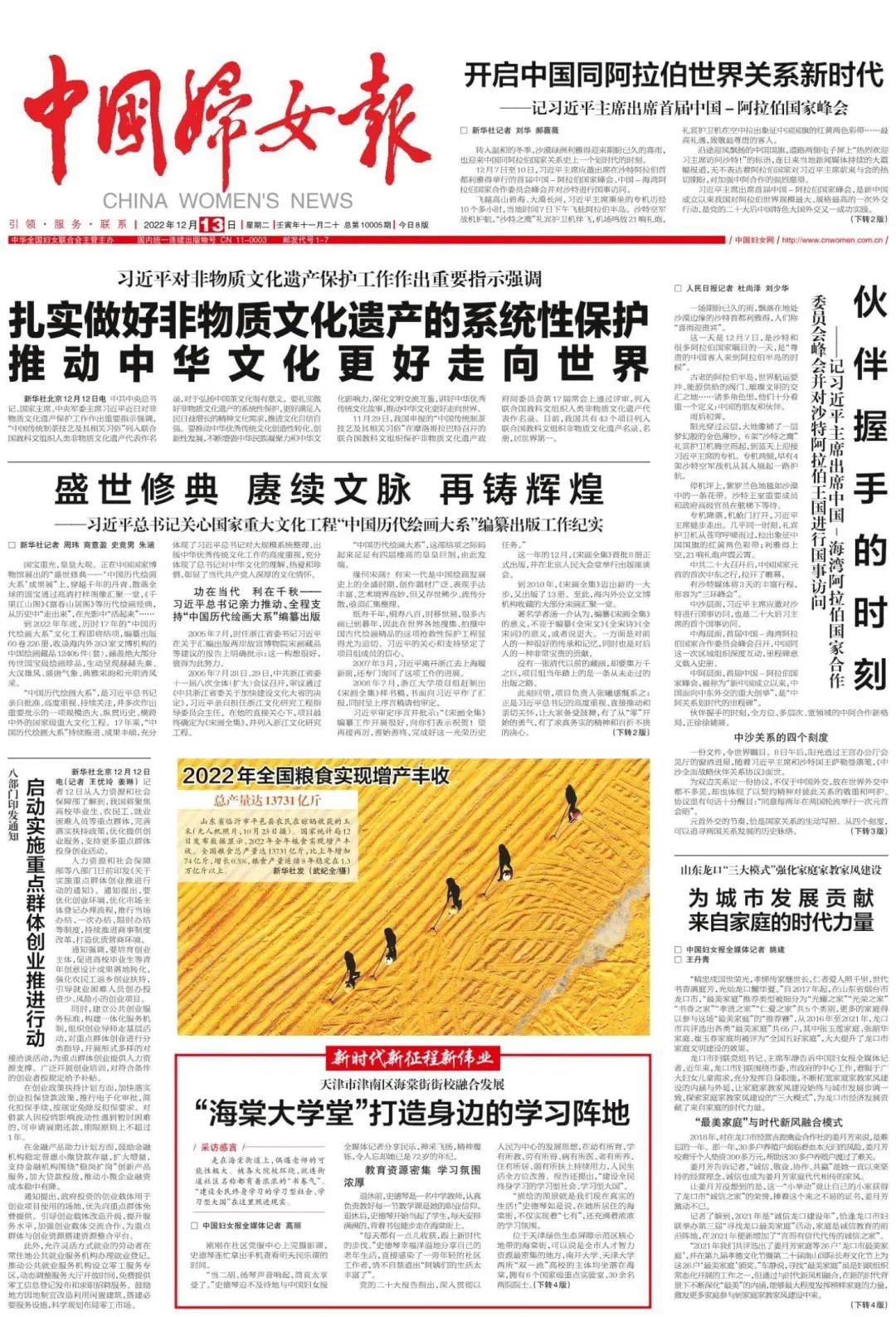 12月13日,中国妇女报头版刊发《天津市津南区海棠街街校融合发展 “海棠大学堂”打造身边的学习阵地》。走在海棠街道上,偶遇老师的可能性极大。被各大院校环绕,就连街道社区名称都有着浓浓的“书卷气”。“建设全民终身学习的学习型社会、学习型大国”在这里照进现实。