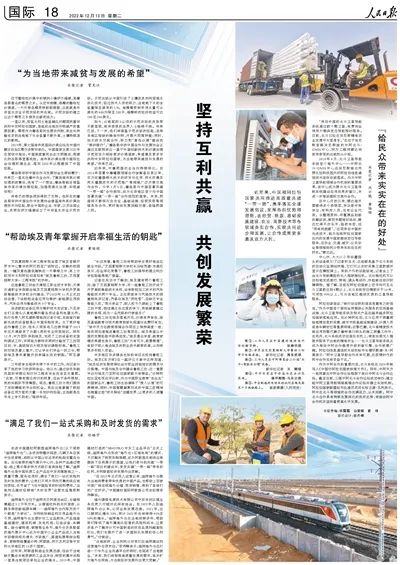12月13日,人民日报第18版刊发《坚持互利共赢 共创发展繁荣》。艾因夏姆斯大学工程学院坐落于埃及首都开罗市中心繁华的阿巴西亚广场附近。安静的校园里,一幢灰黄色建筑掩映在一片翠绿之中,其上分别用中文和阿拉伯语写有“埃及鲁班工坊,艾因夏姆斯大学—工程学院”的字样。这座鲁班工坊由天津轻工职业技术学院、天津交通职业学院联合埃及艾因夏姆斯大学和开罗高级维修技术学校合作建设,于2020年11月正式启动运营,下设数控设备应用与维护、新能源应用技术、汽车运用与维修技术3个专业。