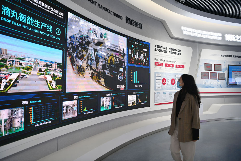 观众在天士力大健康展览体验馆参观滴丸智能生产线(4月18日摄)。新华社记者李然摄