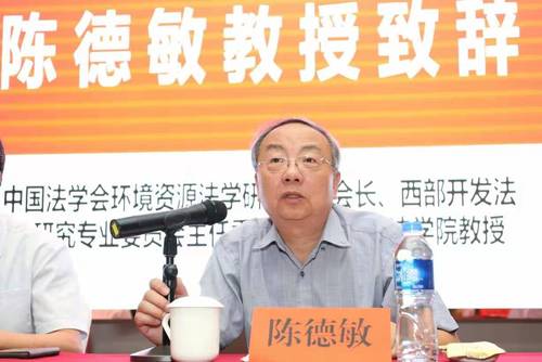 中国法学会环境资源法学研究会副会长、西部开发法律研究专业委员会主任委员、重庆大学法学院教授陈德敏致辞