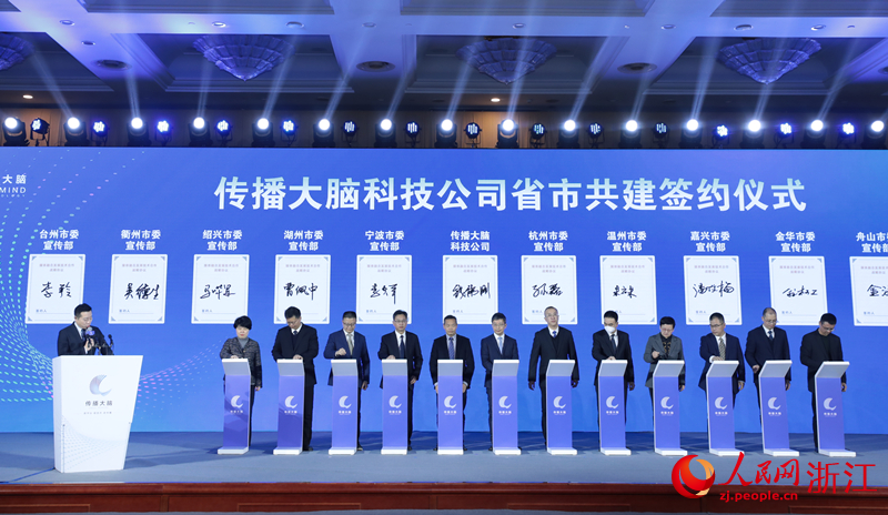 传播大脑科技公司与浙江11个设区市签署地市战略合作协议。人民网 康梦琦摄