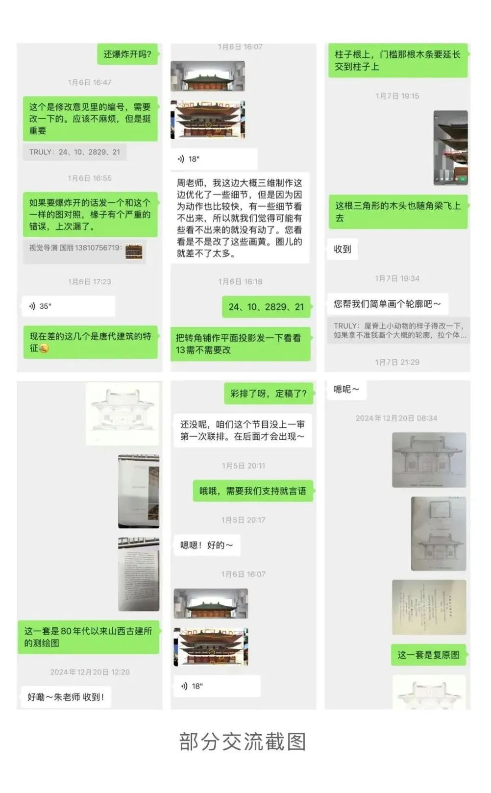 天津大学建筑学院副教授朱蕾老师讲述了与春晚团队联手的幕后故事。“央视春晚很严谨,希望节目中涉及的古建筑术语、比例尺度、结构构造都能有坚实的学术依据。距离春晚42天时,节目导演组带着脚本草稿来咨询天津大学建筑学院建筑历史与理论研究所王其亨教授研究团队。经过反复讨论,最终确定下来出镜建筑、枓栱和榫卯节点的具体内容。天大建筑学院依托延承了八十多年的古建筑研究,积累了丰富的建筑测绘成果和丰富的二维图纸和三维数字模型,以深厚的学术底蕴保障了节目创作如期高质量完成。”在《栋梁》节目制作过程中,双方在静帧上沟通了数十处修改,不断优化,直到节目播出前。