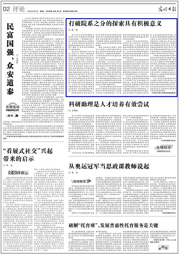 当然,如何真正建立起符合学科交叉融合、更有利于复合型专业人才培养的大学内部治理结构,如何真正理顺大学运行中的各种权责利关系,如何更加充分释放大学中各类主体的潜力和活力,依然有待于在实践中不断进行检验和探索。(作者:高耀,系天津大学教育学院副教授)