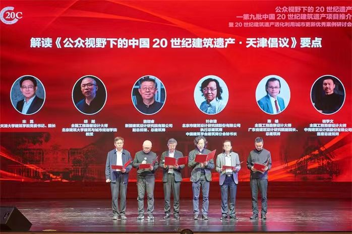 会议隆重发布了《公众视野下的中国20世纪建筑遗产·天津倡议》,北京市建筑设计研究院股份有限公司执行总建筑师叶依谦,全国工程勘察设计大师、广东省建筑设计研究院副院长、总建筑师陈雄,全国工程勘察设计大师、中南建筑设计院股份有限公司首席总建筑师桂学文,全国工程勘察设计大师、北京建筑大学建筑与城市规划学院教授胡越,新疆建筑设计研究院有限公司总建筑师薛绍睿,天津大学建筑学院党委书记、院长宋昆解读《倡议》要点。