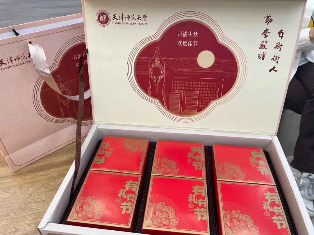 又是一年中秋节,圆圆的月饼是思念,甜甜的馅料是惦念,精美的印花是挂念。为抚慰学子们的思乡之情,营造传统节日氛围,天津师范大学制作了专属月饼。月饼印有校徽、勤奋严谨、自树树人等精美图案,包含众多口味,使同学们在校园中也能感受到家的温暖,度过一个温馨有意义的中秋。