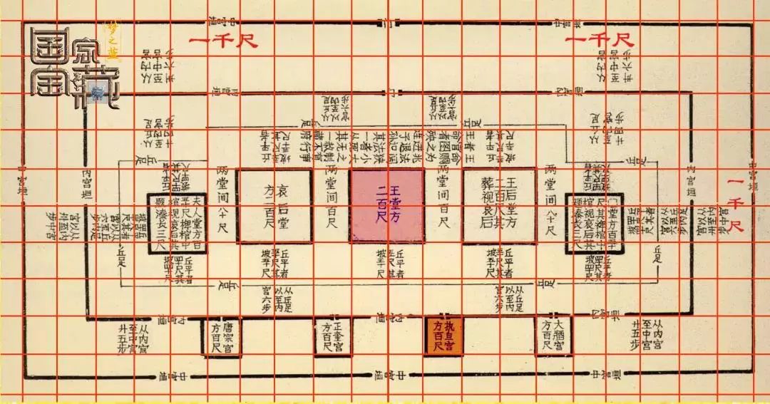中山王墓兆域图平格复原图(底图河北博物院藏,平格网王其亨老师绘)