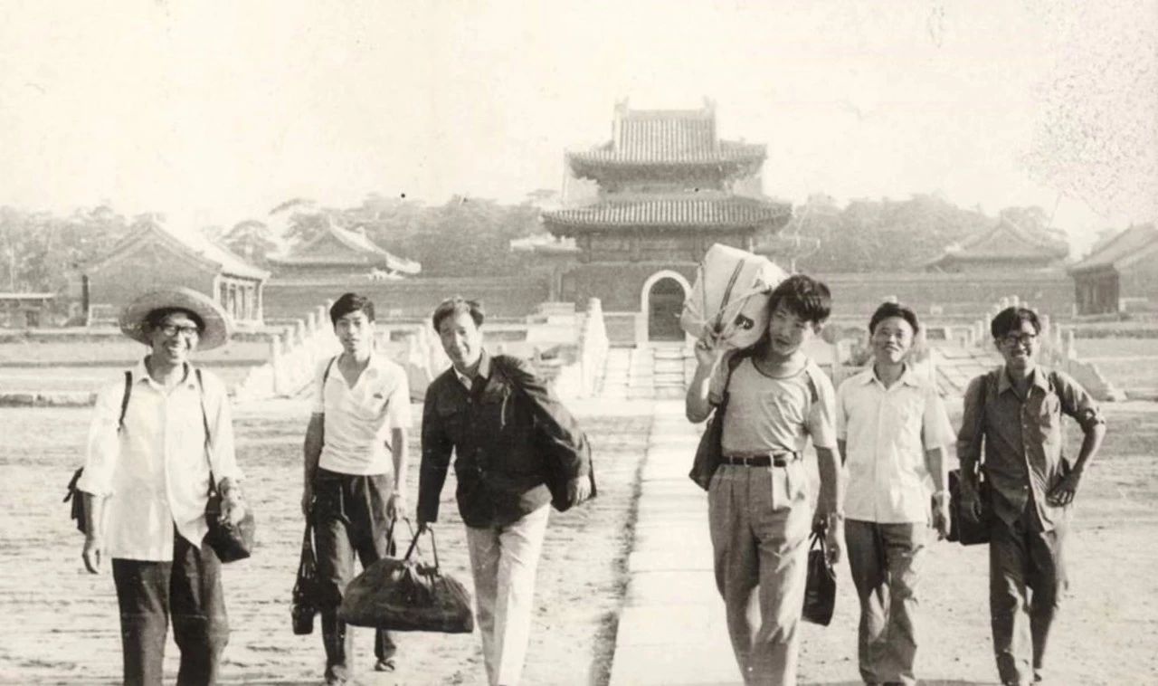 1983年王其亨教授(左一)于河北易县清西陵测绘现场(图片由天津大学提供)