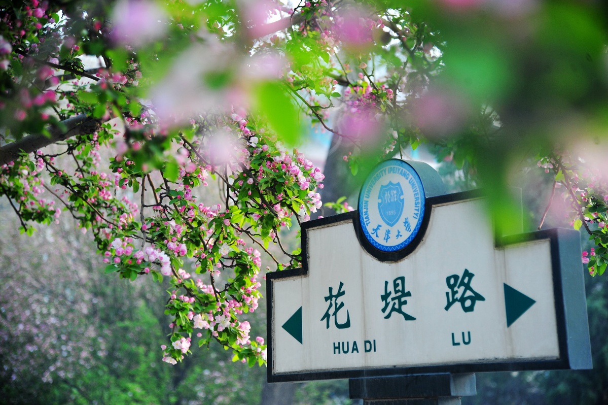 天大卫津路校区现有海棠800余株,大部分的海棠树龄约有40年,校园内水利馆附近的海棠树已有约70年历史。