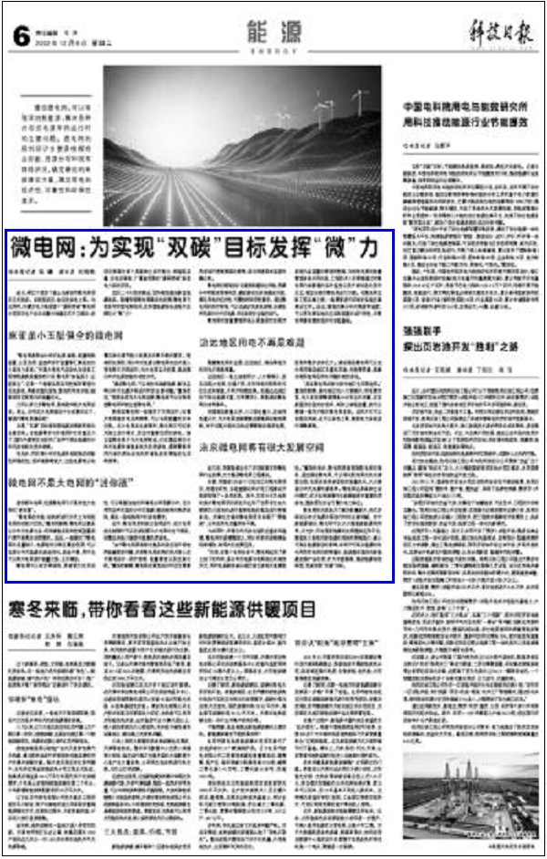 微电网技术就是为了解决数量庞大、形式多样的分布式电源并网运行时的主要问题。对于新能源建设,微电网可以大大提高新能源利用率,为光伏、风电等新能源的发展提供应用平台,提高电力系统对新能源的消纳和控制能力,减小可再生能源波动的影响,有利于可再生能源的优化利用和电网的削峰填谷,促进清洁高效的新能源发挥产业优势,扩大市场规模,推动能源结构转型,加速实现“双碳”目标。(本报记者 陈 曦 通讯员 刘晓艳)