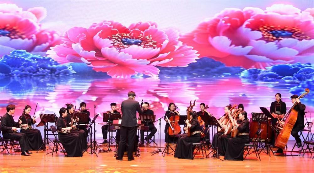 本站讯 11月2日晚,“风云际会 盛世弦歌”第三届中国北方(肃宁)电商节暨对外经贸洽谈会主题音乐会在肃宁县文化艺术中心大礼堂举行,合奏《茉莉花》、京胡独奏《夜深沉》、中阮独奏《幽远的歌声》等节目,奏响了本届电商节和对外经贸洽谈会的序曲。