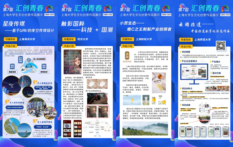 据悉,“汇创青春”是积极推进上海“设计之都”建设,大力营造全市文化创新创造氛围的重要抓手。本次“汇创青春”互联网+文创类作品展示活动由上海财经大学承办,活动自2月份启动以来,共收到来自46所高校的600余个项目,这些项目生动地展现了长三角高校大学生们昂扬向上的创新创业创造精神和创意设计能力。