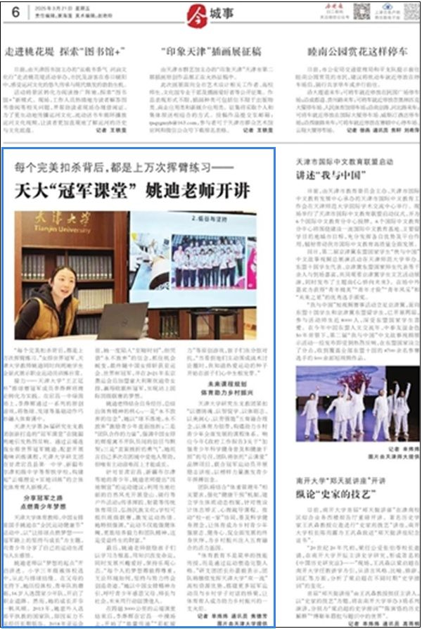 “体育教育不是简单的技能传授,而是通过运动塑造完整人格。”研支团团长孙嘉毅表示,团队将继续发挥天津大学“双一流”高校资源优势,搭建更多冠军运动员与乡村学子对话的桥梁,让体育育人成为助力乡村振兴的一支火炬。