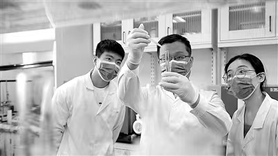 天津大学国家储能平台电化学储能中心科研人员正在研发新型高性能电池电解液。天津大学供图