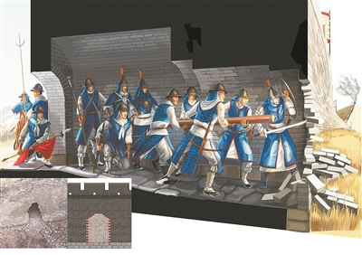 “突门是用来实施突袭战术而设置的,清晚期著名学者魏源曾用‘藏于九地之下为暗,动于九天之上为突’来描写突门。”张玉坤解释,就是在暗道外面砌上一批砖,以起到伪装作用,突袭时士兵击碎这层薄砖墙就可破墙而出,打敌军一个措手不及。