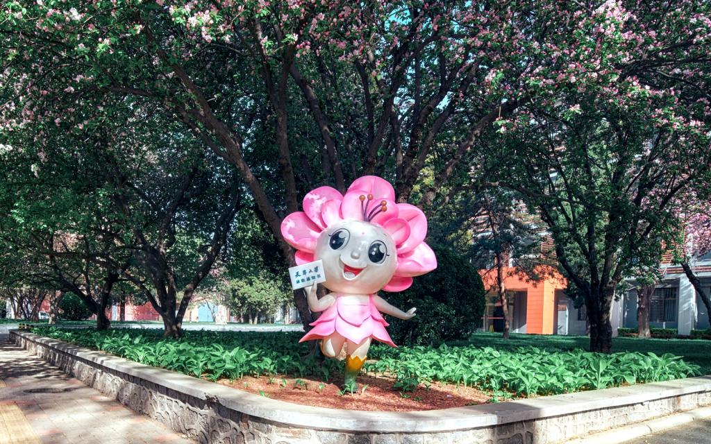 天津大学校园内的海棠花吉祥物雕塑。 受访者供图