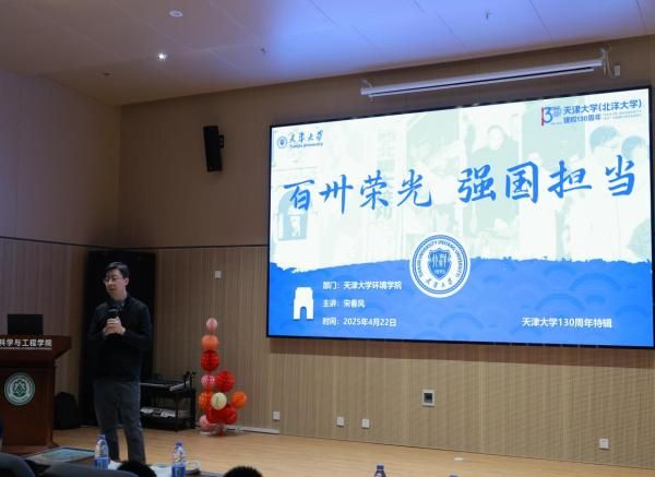 活动伊始,环境学院副院长宋春风教授为同学们带来了题为《百卅荣光 强国担当》的宣传讲座,讲座通过丰富的图文资料和生动的讲解,向同学们介绍了天津大学一百三十年的发展历程、辉煌成就以及在国家重大工程和社会进步中所肩负的责任与使命。宋院长勉励大家树立远大理想,珍惜学习时光,未来努力成长为担当民族复兴大任的时代新人。