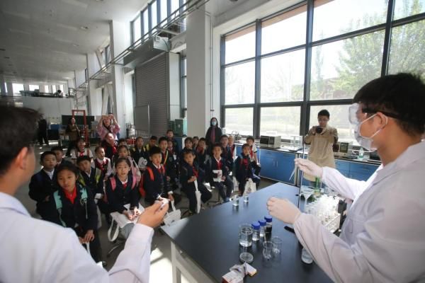紧接着,同学们在宋院长的带领下来到B101 实验室参与了趣味实验课程,酚酞溶液遇碱变红、活性炭吸附色素、酸液与小苏打反应,产生二氧化碳等等,神奇的实验现象让孩子们对实验原理充满了好奇,亲身体验科学实验的乐趣与奥秘。