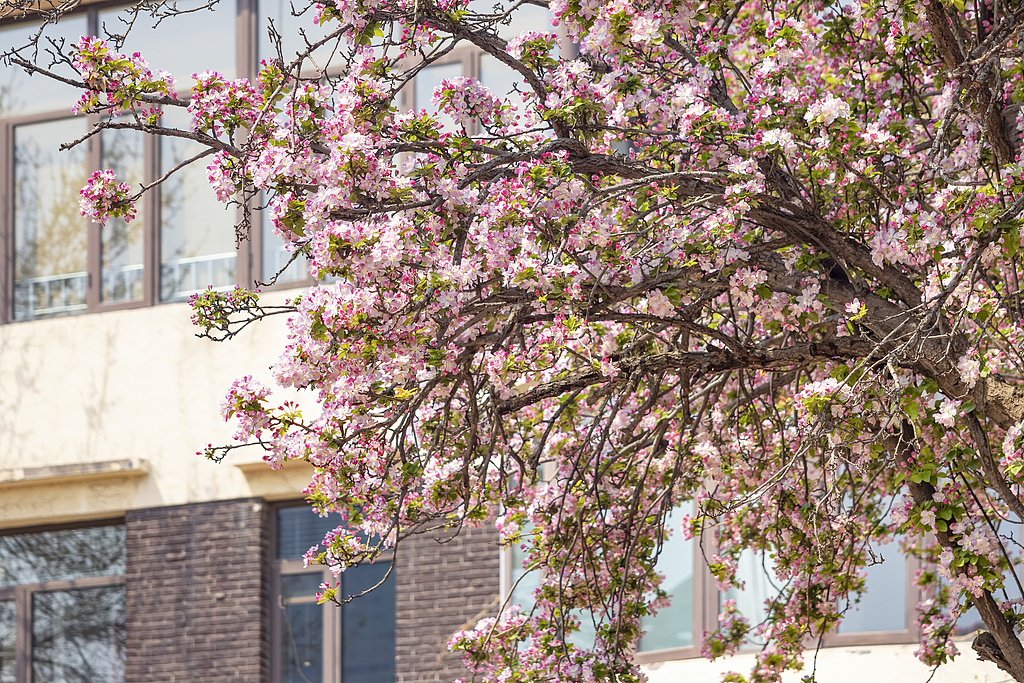 天津五大道的海棠花也竞相盛放,粉嫩绚烂