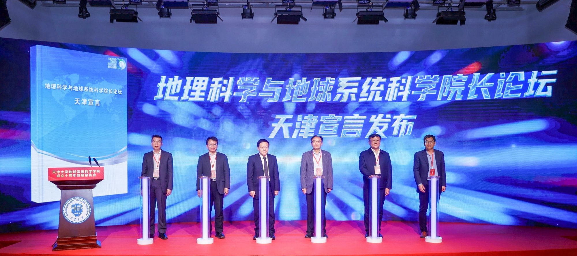 天津大学地球系统科学学院院长刘丛强、陕西师范大学副校长董治宝、北京大学城市与环境学院院长贺灿飞、北京师范大学地理科学学部部长李小雁、南京大学地理与海洋科学学院院长王先彦、清华大学地球系统科学系主任罗勇,共同启动宣言发布仪式。