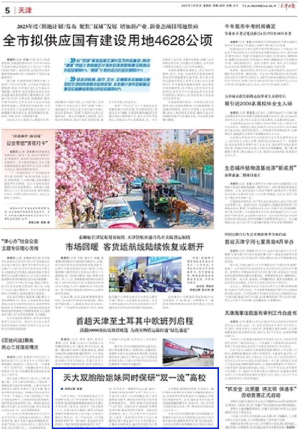 天津日报:天津日报数字报刊平台-天大双胞胎姐妹同时保研“双一流”高校 (tianjinwe.com)
