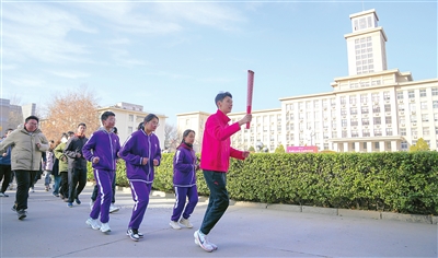 昨日,南开大学“爱国薪火永相传,公能情怀勇担当”纪念“一二·九”运动89周年主题活动在该校八里台校区举行,来自各学院、马拉松协会、南开系列学校的129名师生代表以火炬接力校园跑等形式铭记历史、砥砺前行。第一棒火炬手、南开大学“青马工程”培训班学员代表康志清表示:“爱国精神如永不熄灭的火焰,激励着我们踔厉奋发、勇往直前。”与同学相约跑在队伍最前端的南开大学附属中学高一学生阿旺色珍说:“参与接力跑这一传播红色文化、弘扬爱国精神的活动,是一次珍贵且很有意义的体验。”