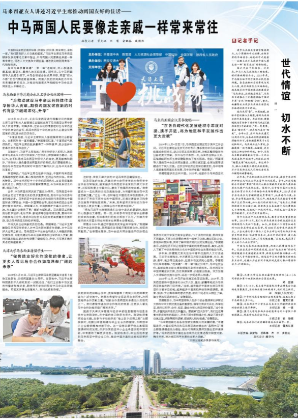 在中马高质量共建“一带一路”进程中,民心相通是最基础、最坚实、最持久的互联互通。近年来,在中马两国领导人战略引领下,中马各领域合作成果丰硕,两国“切水不断”的世代情谊愈益深厚。两国人民的双向奔赴为中马关系增添新的活力,为推动构建高水平战略性中马命运共同体注入不竭动力。