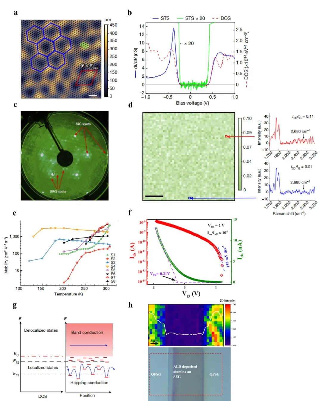 据了解,该项研究采用创新的准平衡退火方法,制备出超大单层单晶畴半导体外延石墨烯(SEG),具有生长面积大、均匀性高,工艺流程简单、成本低廉等优势。该方法制备的半导体石墨烯,拥有约600毫电子伏带隙以及高达5500厘米平方每伏特秒的室温霍尔迁移率,优于目前所有二维晶体至少一个数量级。以该半导体外延石墨烯制备的场效应晶体管开关比高达10000,基本满足了工业化应用需求。