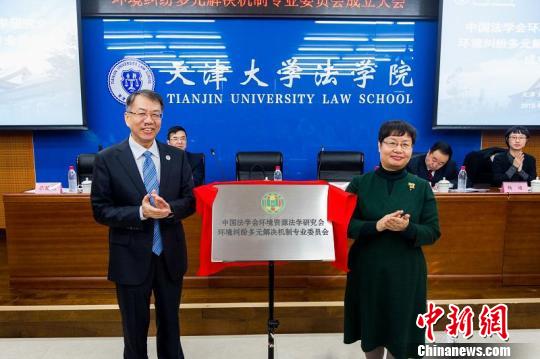 中新网天津11月10日电 (记者 张道正 通讯员 郭金石)中国法学会环境资源法学研究会环境纠纷多元解决机制专业委员会成立大会10日在天津大学法学院举行。中国法学会环境资源法学研究会负责人吕忠梅与天津大学党委副书记、纪委书记孙广平共同为专业委员会揭牌。