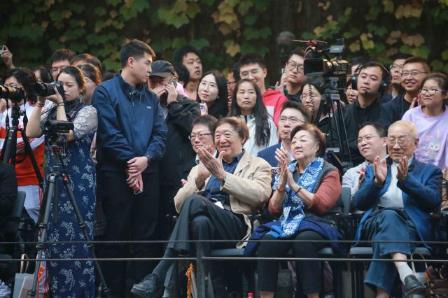 秋色中,冯骥才先生与天大师生、来宾一起参加“红叶季”活动。