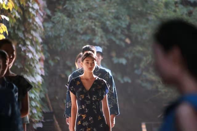 天津工业大学学生带来非遗时装展示《布上青花》。
