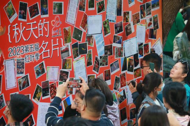 由诗歌和图片组成的红叶诗画廊,簇拥的人群,留下关于秋天的记忆。