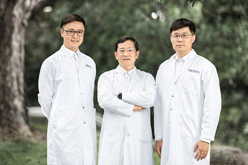 新加坡国立大学生物化学系教授TooHeng-phon(左二)、周砺寒(左一)和邹瑞阳(右一)