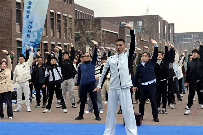 记者在开幕式上看到,学生体育社群、“社区体育引领员”上台接受授旗和聘书,标志着第一批荧光夜跑、广场舞、“早八”晨练、飞盘、轮滑、瑜伽、啦啦操等37个活动项目即刻“启航”。学校还现场进行了八段锦教学、长绳“班班赛”等趣味活动。师生兴趣盎然,气氛热烈。