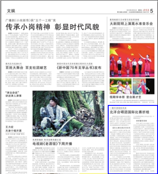 目前,南开大学合唱团、天津大学北洋合唱团等高校合唱团在国内外成绩斐然,体现了天津高校学子不俗的合唱水平。提及高校合唱团的未来发展,温雨川表示,上升空间还很大:“南开大学和天津大学这两个合唱团各具特色,南开大学合唱团更侧重于合唱的表演和题材,我们则更侧重于合唱的新作品和前卫的艺术理念。两个合唱团都是与国际接轨的合唱团,在国际上都拿了很多奖项。”