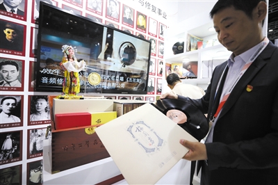 “我们专门做有声文化遗产的搜集、修复和保护工作,把这些‘历史的声音’数字化、制作成出版物传承下来。比如在这里展示的《梅兰芳全集》,就是一套完整收录梅兰芳京剧唱段的黑胶唱片。”华韵文化科技有限公司董事长熊志远介绍,“这套作品是由梅葆玖先生担任顾问的,做完后他评价说,这套唱片记录了梅兰芳最真实的声音。”