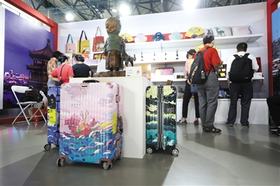 文博会“来自公园的礼物”展区,来自颐和园的文创产品六合太平行李箱格外显眼。