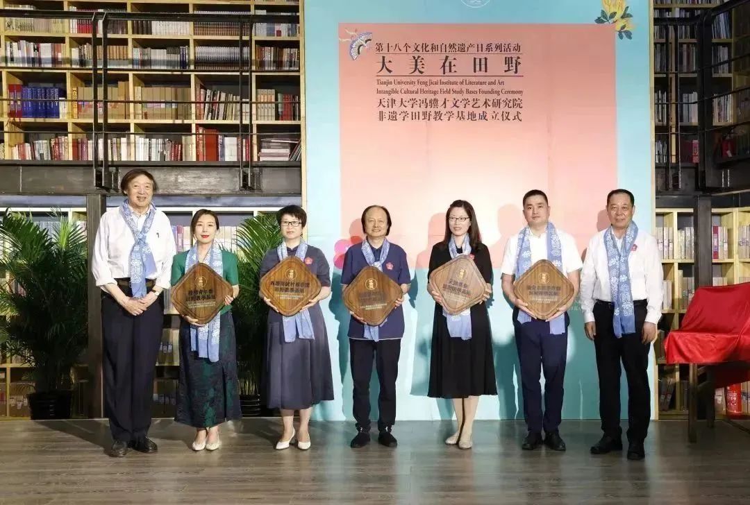 天津大学党委书记杨贤金与冯骥才先生共同为五个非遗学田野教学基地授牌