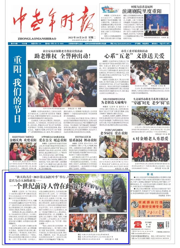 本报讯(记者李剑)“秋天的名片·2023第五届红叶季”诗歌音乐会及学生文化活动22日下午在天津大学冯骥才文学艺术研究院举行。