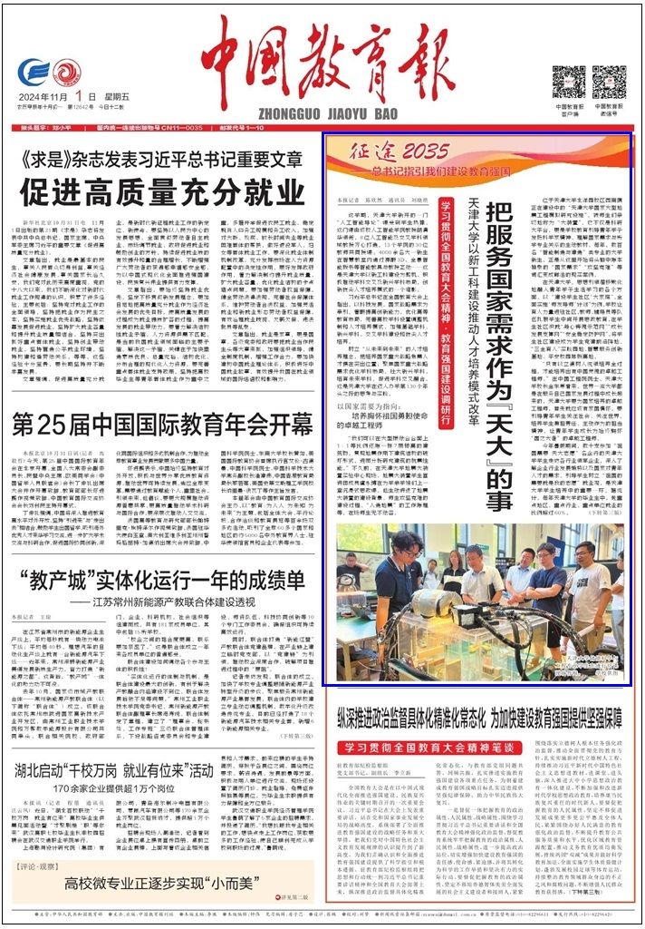 “天津大学将持续以新工科建设推动学校人才培养模式改革,带动新文科、新医科建设,着力提升拔尖创新人才自主培养能力;紧密对接国家战略和行业产业发展需求,增强关键核心技术的攻关和供给能力,着力打通束缚新质生产力发展的堵点卡点;要在深化教育综合改革方面敢迈步、先迈步,持续推动新工科‘天大方案’迭代更新,以昂扬状态投入到教育强国建设中,努力为推进中国式现代化、实现中华民族伟大复兴贡献积极力量。”天津大学党委书记杨贤金说。