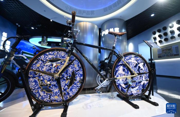 这是12月13日在天津飞鸽品牌文化馆内拍摄的融入景泰蓝风格的自行车产品。新华社记者 赵子硕 摄