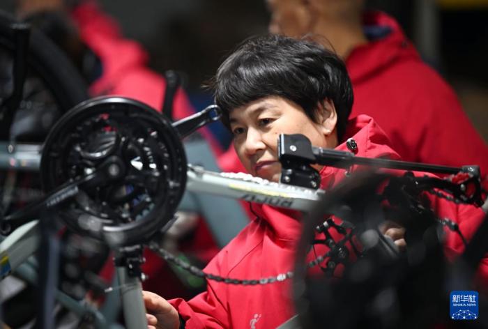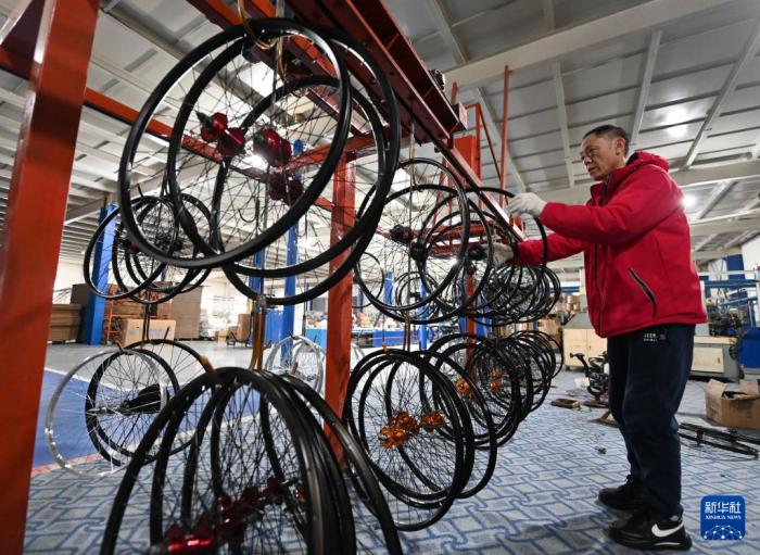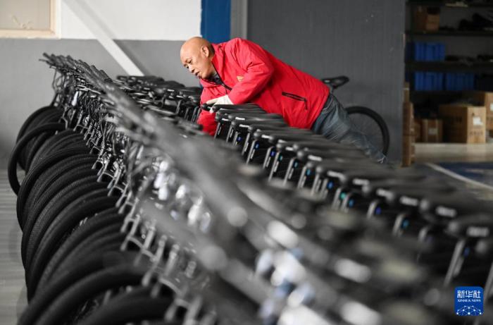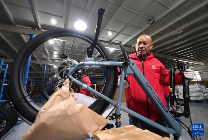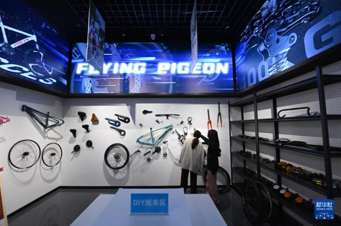 在飞鸽自行车的一处工厂内,工作人员在车间组装自行车(12月13日摄)。新华社记者 赵子硕 摄 2023年9月,天津飞鸽品牌文化馆开门迎客,展示飞鸽的品牌传承故事和天津的工业文明记忆。馆内特设的DIY组装区、骑行体验区也吸引众多参观者打卡。