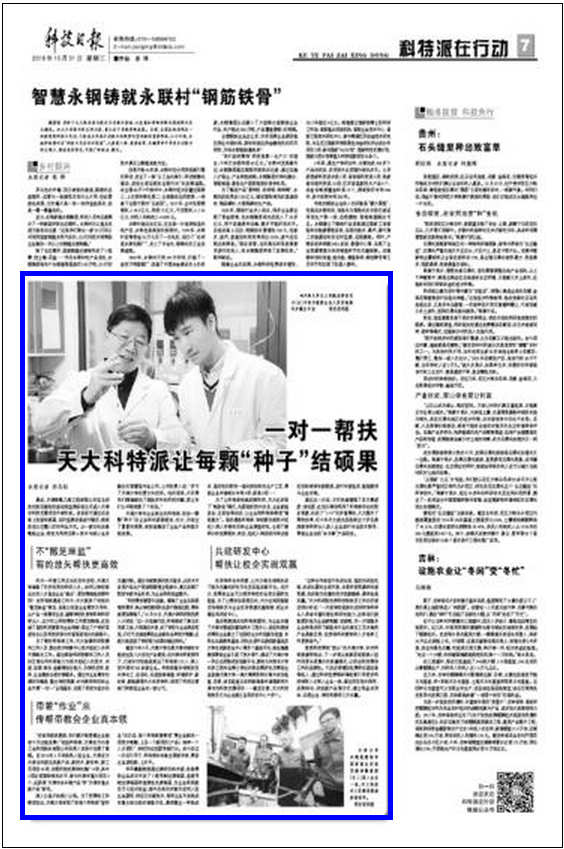 “科技帮扶要雪中送炭。摸准了企业实际困难和需求,再从学校教师队伍进行筛选匹配,帮扶就更加精准了。”10月25日,天津大学科研院负责人介绍说:“这一办法施行后,科特派有了真正的用武之地,不再漂在水面,成了学校与企业联系枢纽,不仅可迅速地帮助企业解决各种技术难题,还极大地促进了学校智力成果的输出转化。”
