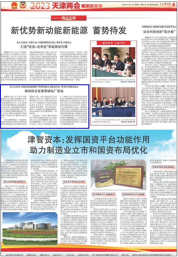 “作为驻津能源央企,国家电投将聚焦‘滨海新区高质量发展示范引领行动’与‘绿色低碳发展行动’,立足天津海洋经济资源禀赋优势,推动能源产业创新发展,加速能源结构绿色转型,推动综合智慧零碳电厂落地,助力天津绿色低碳高质量发展。”市人大代表、国家电投集团资产管理有限公司党委书记、董事长冯俊杰表示。