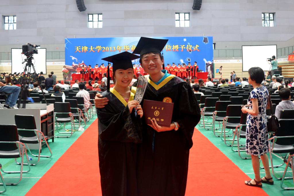 2013年7月,柴澍靖妻子在天大毕业时与柴澍靖的合影。天津大学供图