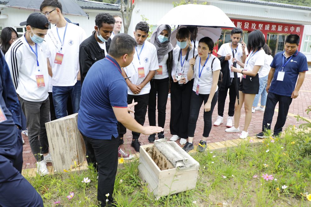 宕昌县谷深林密,花草种类繁多,依托自然资源优势,县里把蜜蜂养殖作为重点产业之一。走进宕昌县兴昌蜂业科技有限责任公司的蜜蜂养殖基地,外籍留学生们被淡淡的蜜香所吸引。