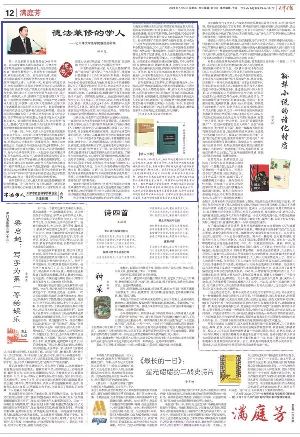 十年磨一剑。今年,天津大学法学院迎来复建后的第10个年头。10年前,天津大学聘请孙佑海老师出任天大法学院复建后的首任院长,这是他投身法学教育、培养法治人才事业的一次重要转身。他曾在国家最高立法、行政执法与司法机关担任过重要职务,为中国法治建设作出重大贡献。10年来,在孙老师的感召下,海内外众多青年英才和一大批法学名家齐聚北洋园,天大法学院从仅有十几位老师发展成为拥有近60名专业教师,老中青学者梯队合理的成规模学院。尤其是学科建设上卓有成效,2019年天大法学院获批法学一级学科博士点;2021年获批国家级一流本科专业建设点;2022年教育部第五轮学科评估中获评B+档次;2023年“软科中国”法学学科排名居全国法学院校前12%,2024年这一排名居全国法学院校前8%。
